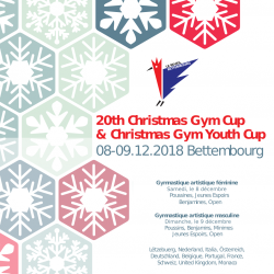 Christmas Gym Cup 2018 08-09.12.2018 Samedi le 8 décembre 2018: Gymnastique artistique féminine Dimanche le 9 décembre 2018: Gymnastique artistique masculine